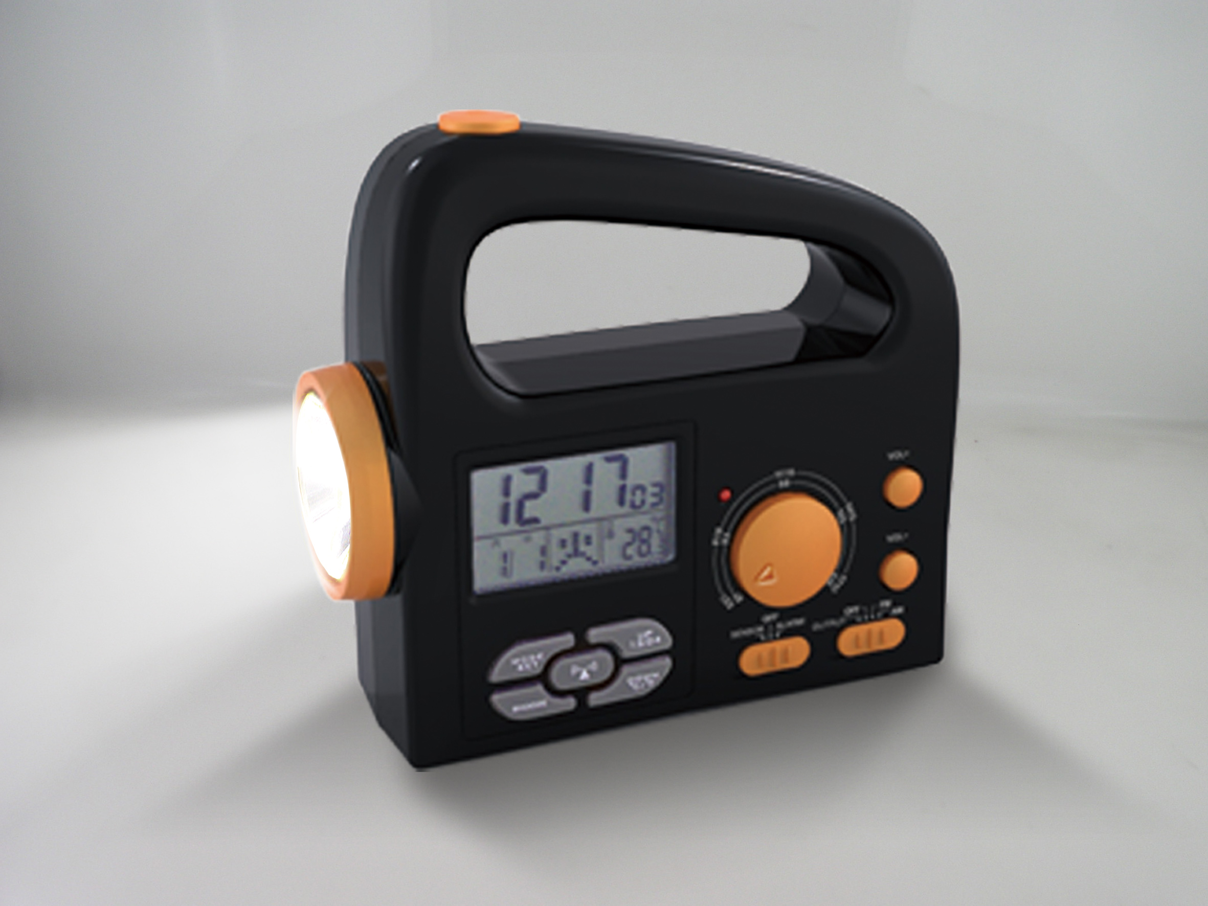 The RCC clock(Atomic clock) or temperature clock will tell accurate time and calendar.The rescue alarm will produce loud siren to draw attention.